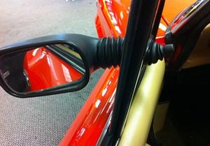 Close up of the remote mirrors coming out of the quarter windows. No... it's not a Fiat.